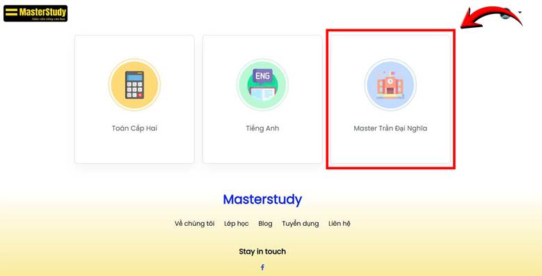 Đầu tiên, học sinh truy cập vào trang: https://elearning.masterstudy.vn và đăng nhập theo tên đăng nhập và mật khẩu đã được cung cấp trong Group Zalo.