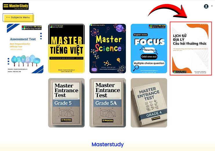 Sau đó học sinh chọn sách LỊCH SỬ, ĐỊA LÝ, Câu hỏi thường thức và chọn GRADE 5