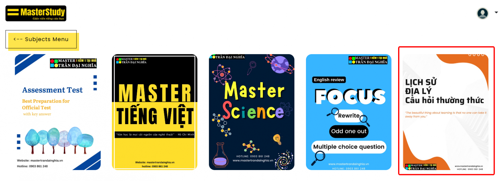 Môn Lịch Sử và Địa Lý các bé sẽ học hoàn toàn trên E-learning nên không có sách cứng. Phụ huynh và các bé truy cập vào link: https://mastertrandainghia.vn/huong-dan-hoc-lich-su-dia-ly-tren-nen-tang-e-learning-post49 để xem cách học các môn này trên E-learning nhé