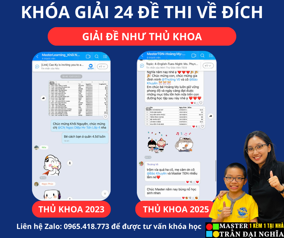 Với thành tích đào tạo 2 thủ khoa TĐN 2023, 2025 cũng như rất nhiều học viên trong top 100, Master Trần Đại Nghĩa thiết kế chương trình luyện thi toàn diện, có chiều sâu và sát với đề thi thực tế. Theo kinh nghiệm luyện thi nhiều năm, nếu học viên đạt trên 80 điểm của 10 đề thi liên tiếp của bộ đề thi Master TĐN biên soạn độc quyền thì khả năng cao sẽ vượt qua được kỳ thi thực tế.